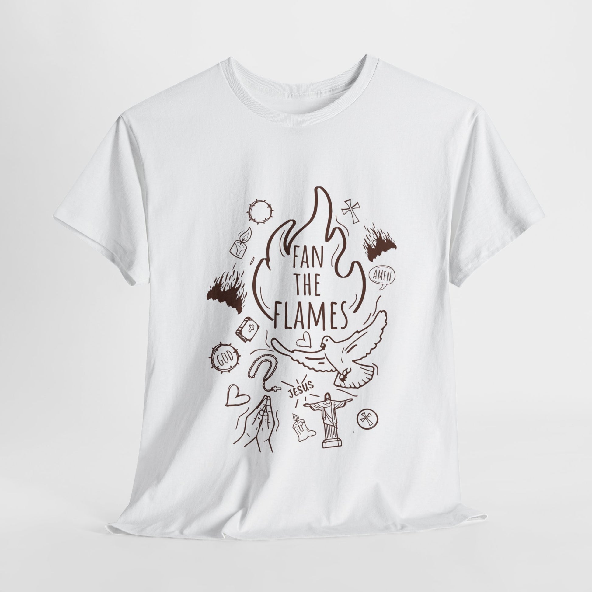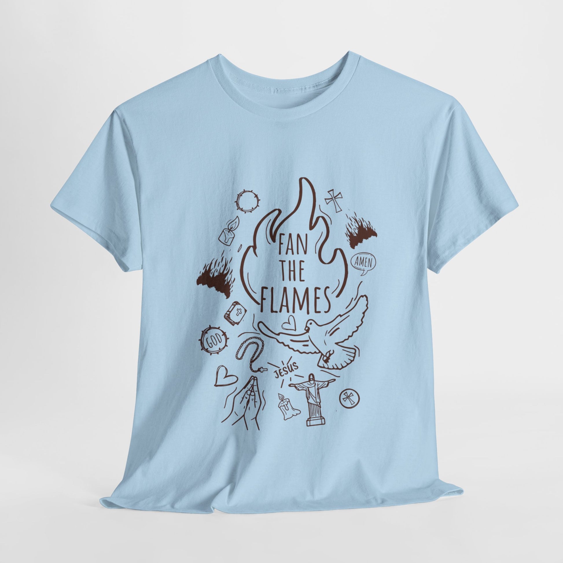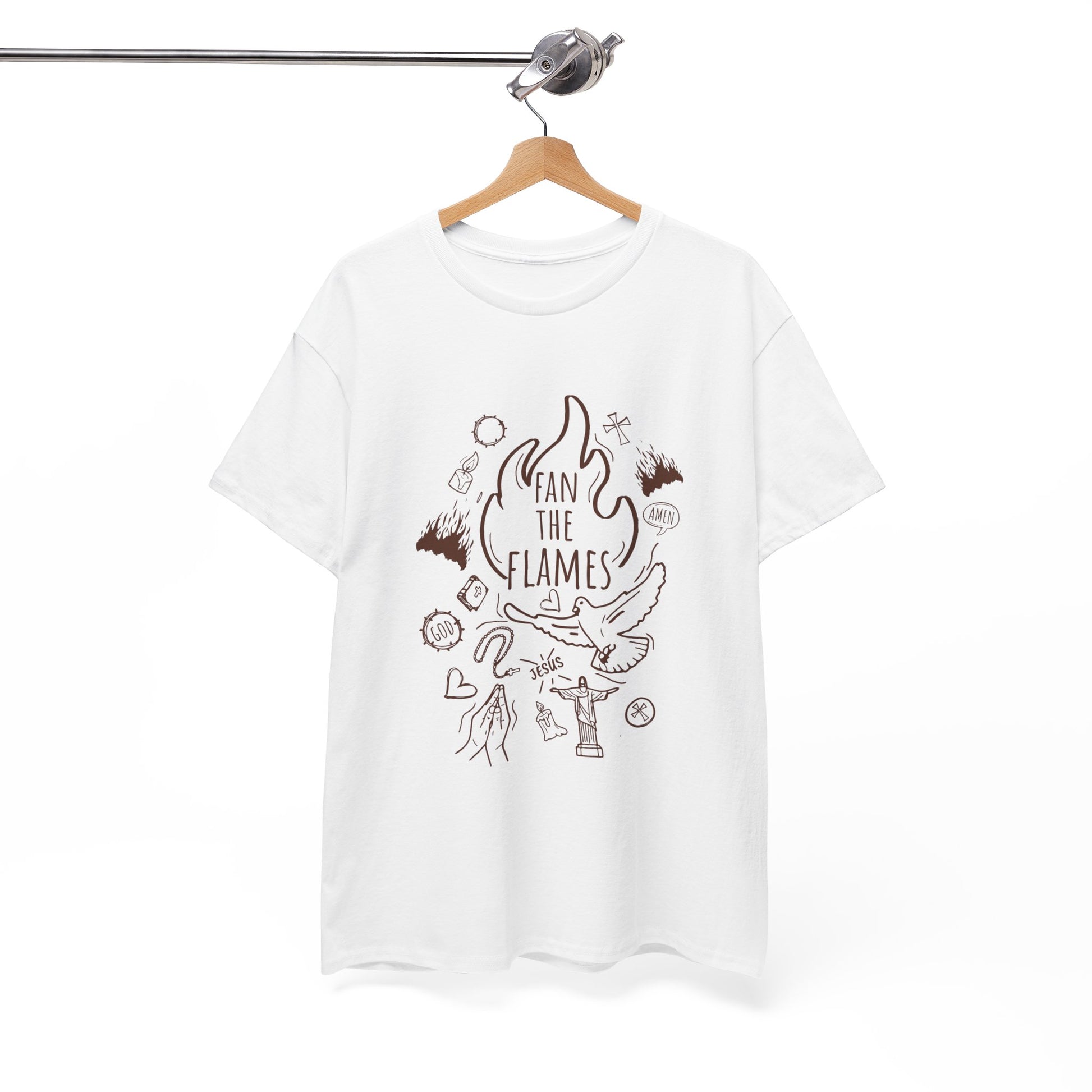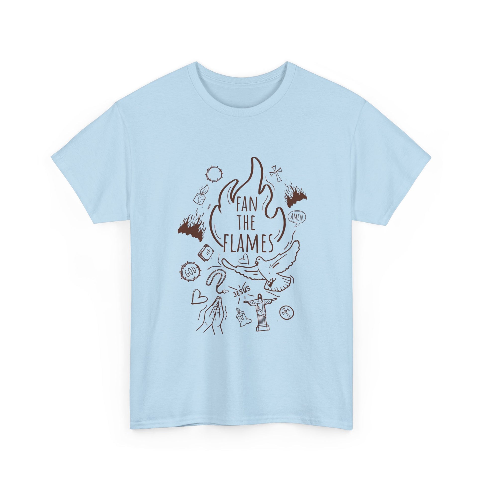 Ignite your faith with the “Fan the Flames” unisex heavy cotton tee. This shirt is a call to keep the fire of the Holy Spirit burning within and to spread His love, hope, and truth wherever you go.